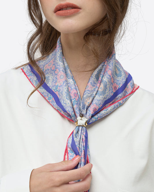 Lion Mandala Rose Blue Double Side Silk Scarf 65