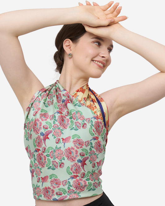 Crimson Sunbird Mint Sunrise Double Side Silk Scarf 100
