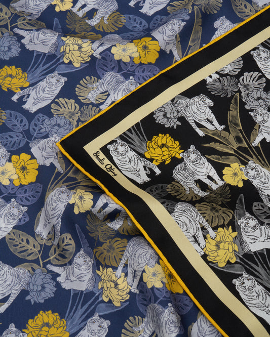 Dragon Scarlet Indigo Double Side Silk Scarf 65
