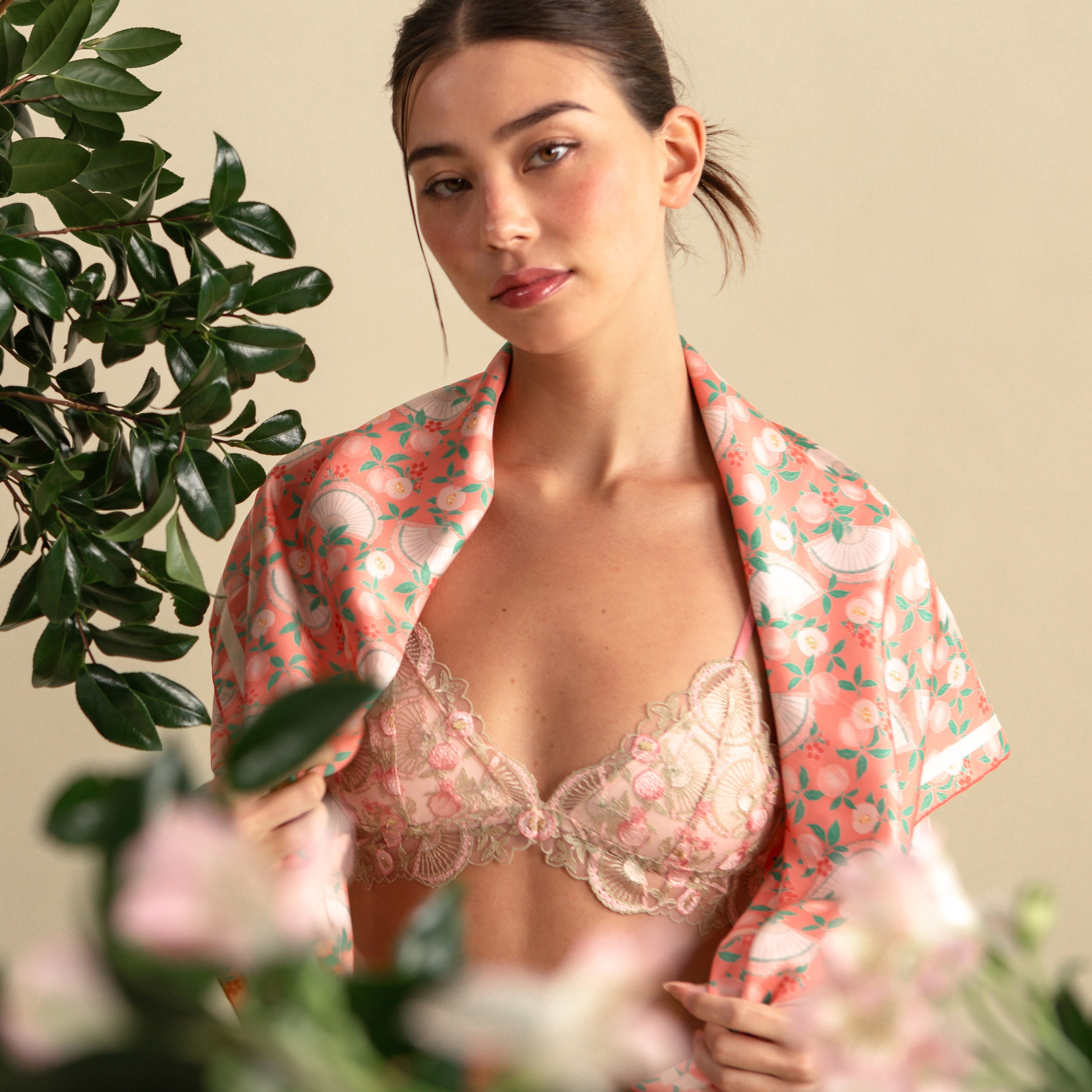 Golden Peaches Coral Silk Bandeau 100