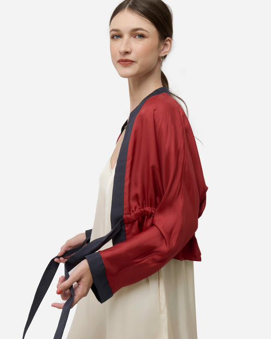 Golden Peaches Coral Reversible Cropped Kimono