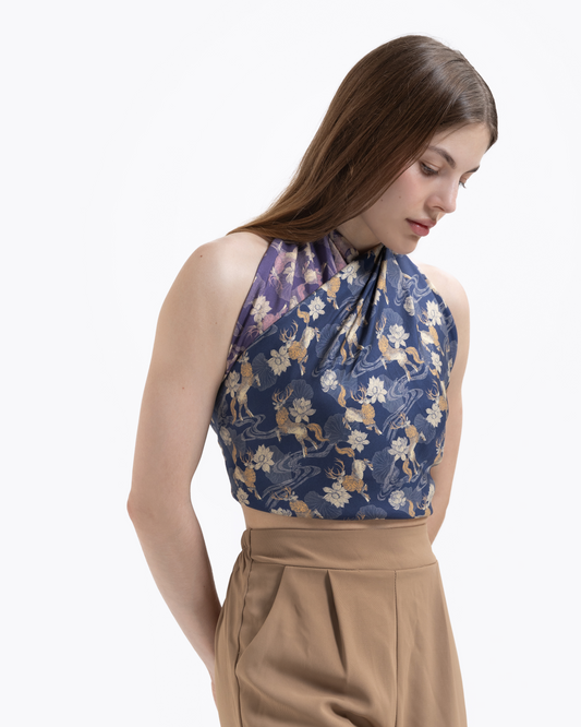 Peony Blue Silk Bandeau 120