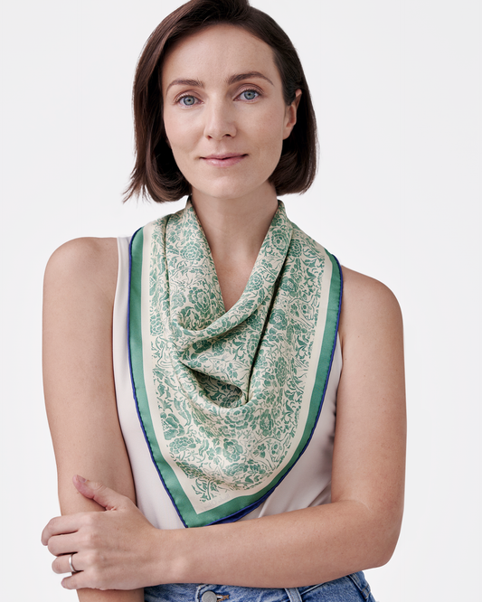 Porcelain Cat Classic Green Double Side Silk Scarf 65