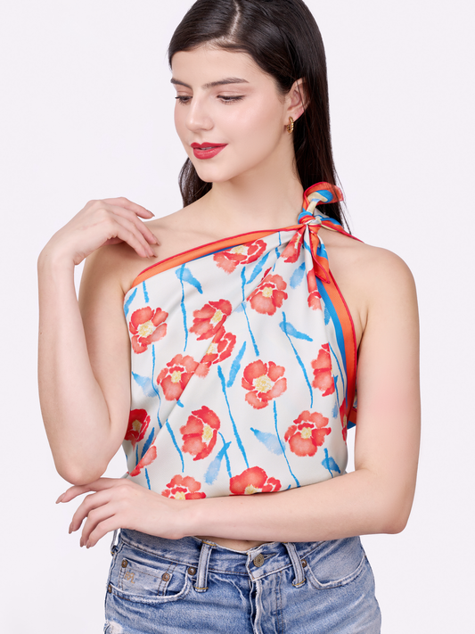 Dancing Poppies Summer Mist Double Side Silk Scarf 100