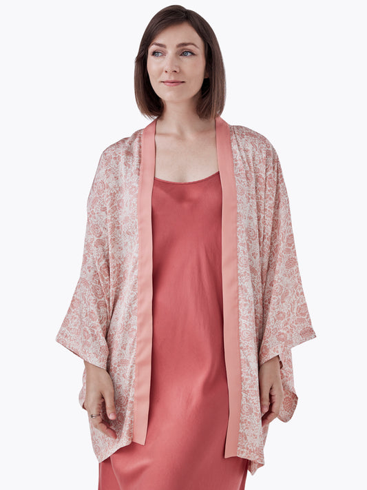 Porcelain Cat Tearose Silk Blend Kimono
