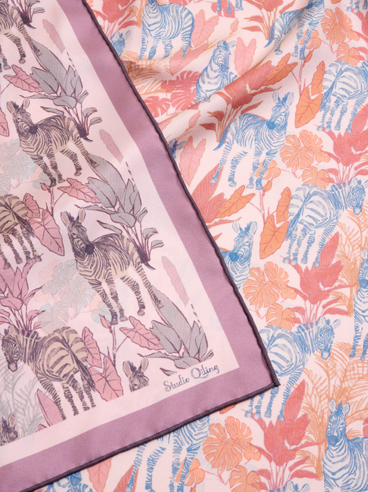 Zebra Lilac Spring Double Side Silk Scarf 65